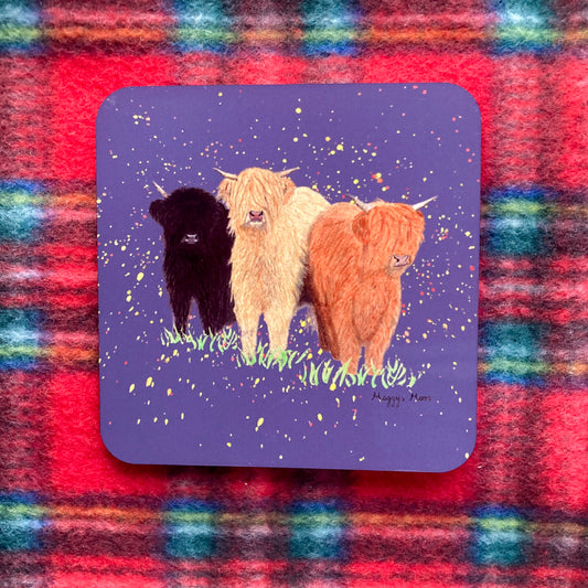 I'm Meggy, a dancer turned beef and sheep farmer based in the Scottish Borders, who enjoys creating watercolour paintings of our own herd of Highland cows! Over the years, I've came to realise just how special the Highland cattle breed is and wanted to share it with you all! Each of my paintings features one of our own cows who i'll be sure to introduce to you along the way, whether it's Granny Fi, The Three Moosketeers or the rest of the herd, you'll get to know them all individually and see just how special they are! Because they're not just any cows, they're Meggy's Moos! Take a look at 'Meet the Herd' to find out more!